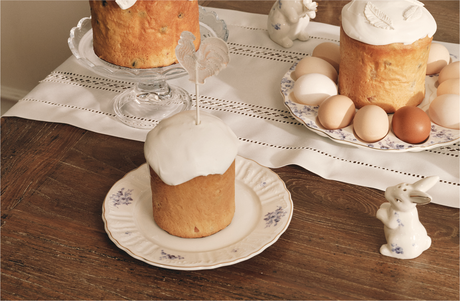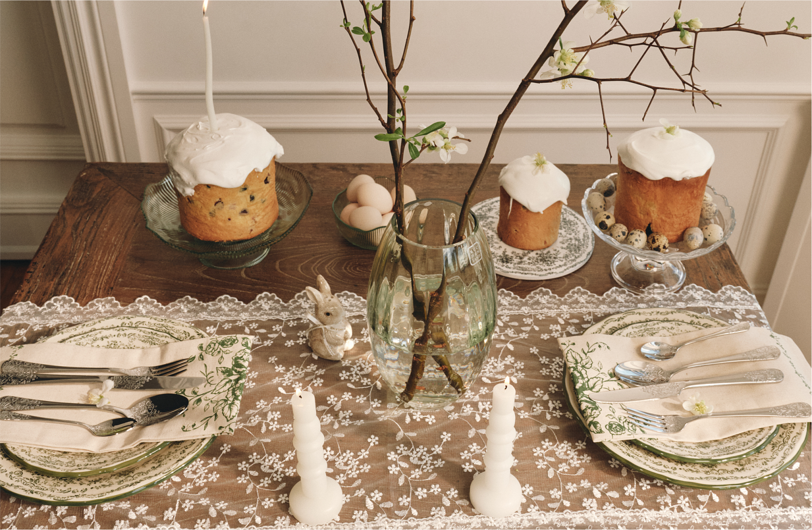 Фарфор с изящным цветочным узором, полупрозрачное стекло и белые подносы для яиц и куличей создадут особое настроение.