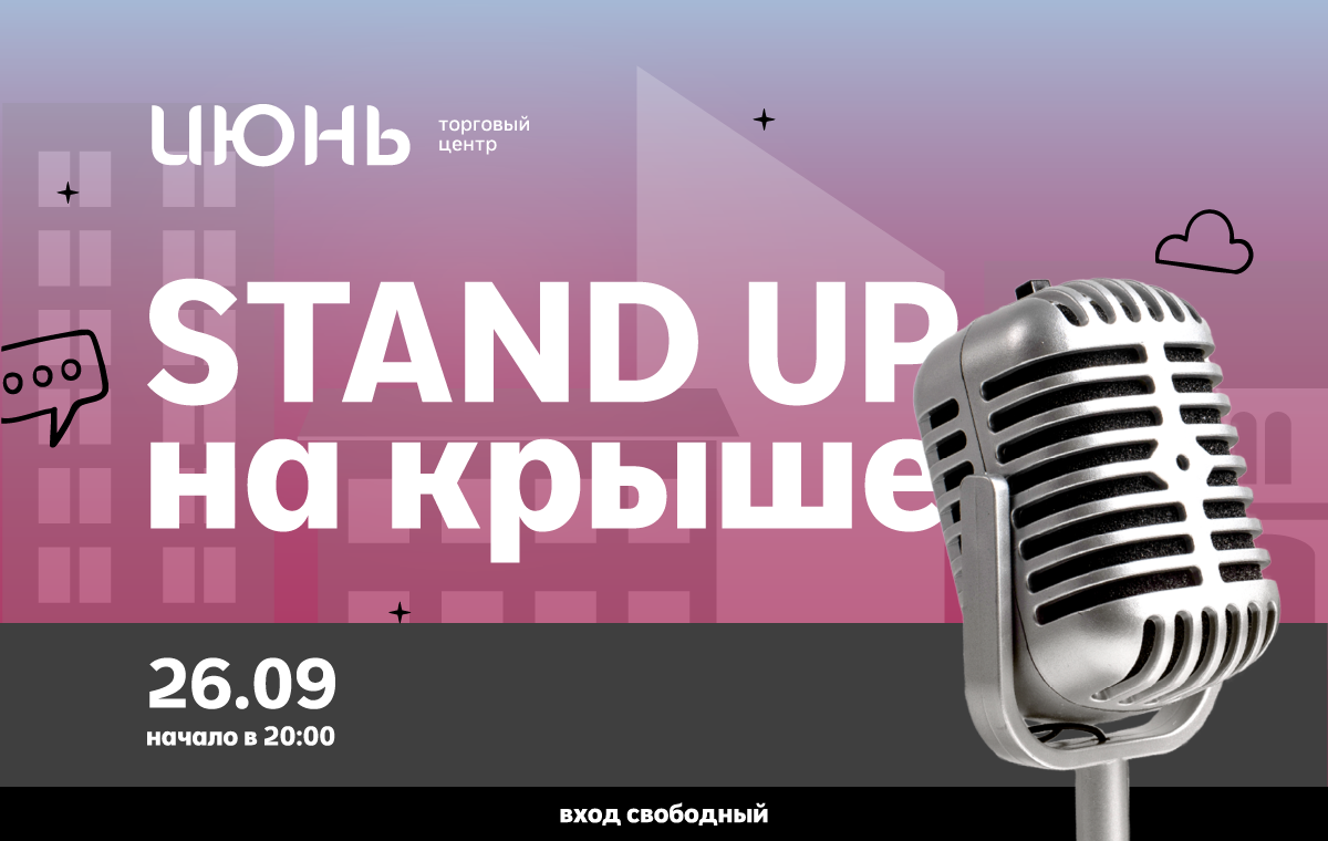 26 сентября в 20:00 на крыше ТРЦ “Июнь” состоится уникальное событие – вечер стендапа!
